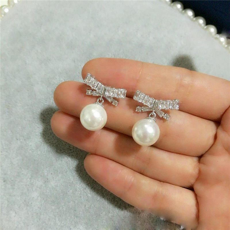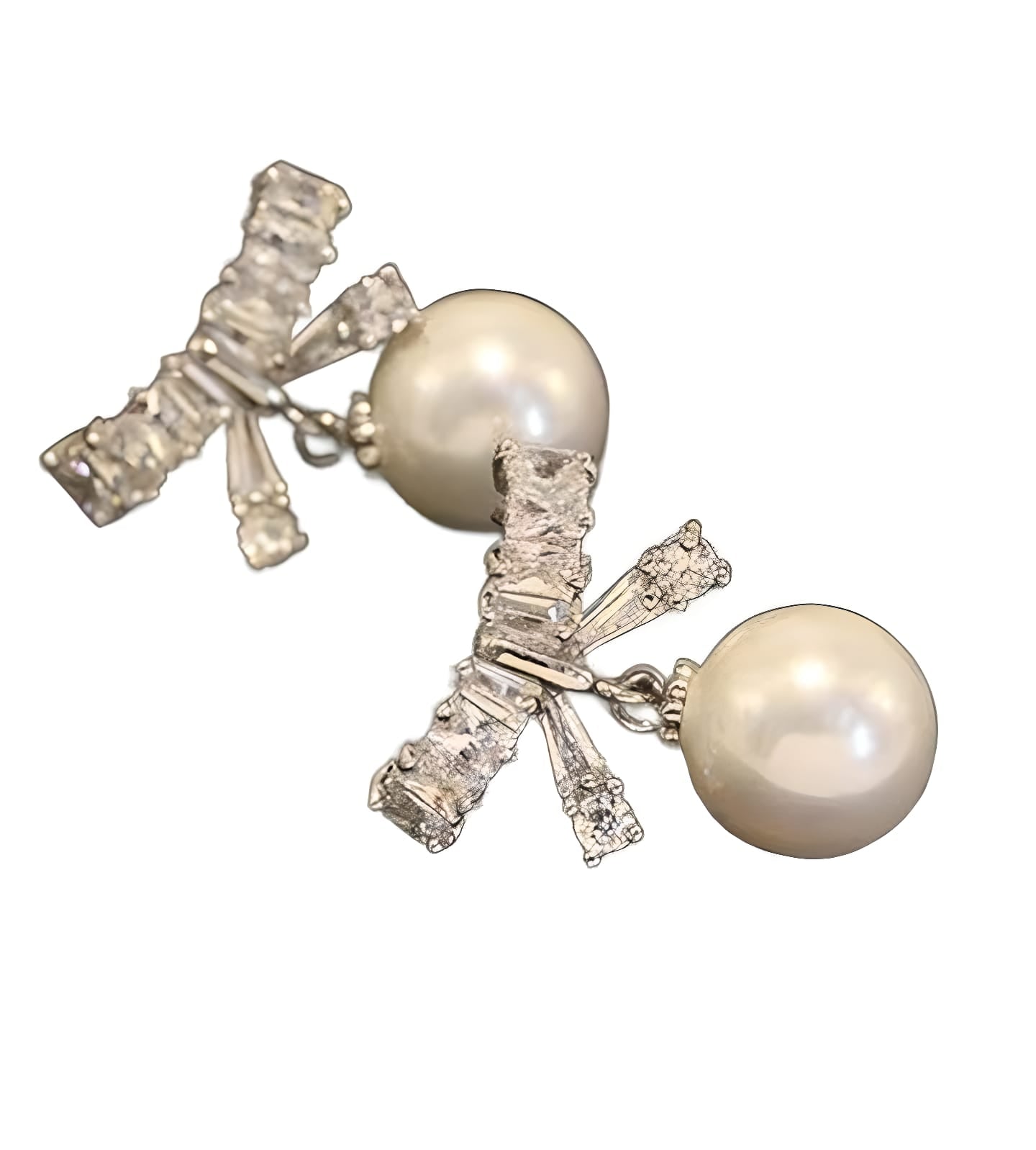 Boucles d'oreilles en perles d'eau douce avec nœud papillon