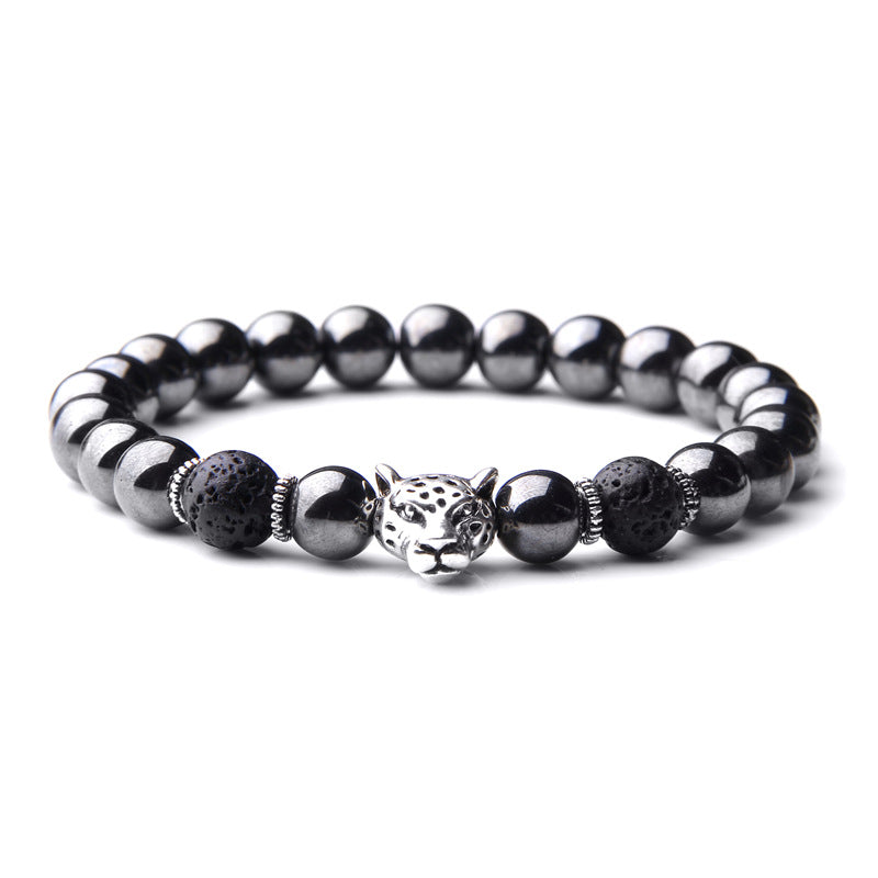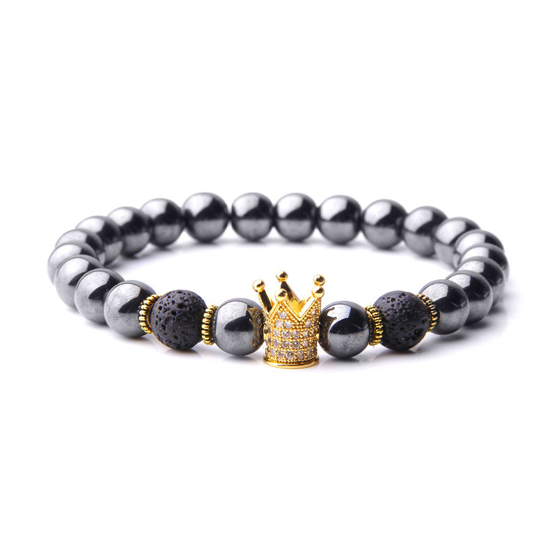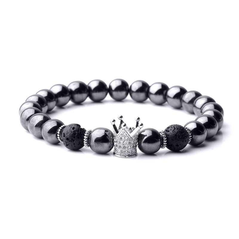 Bracelet en hématite avec perles à breloque couronne micro-incrustées
