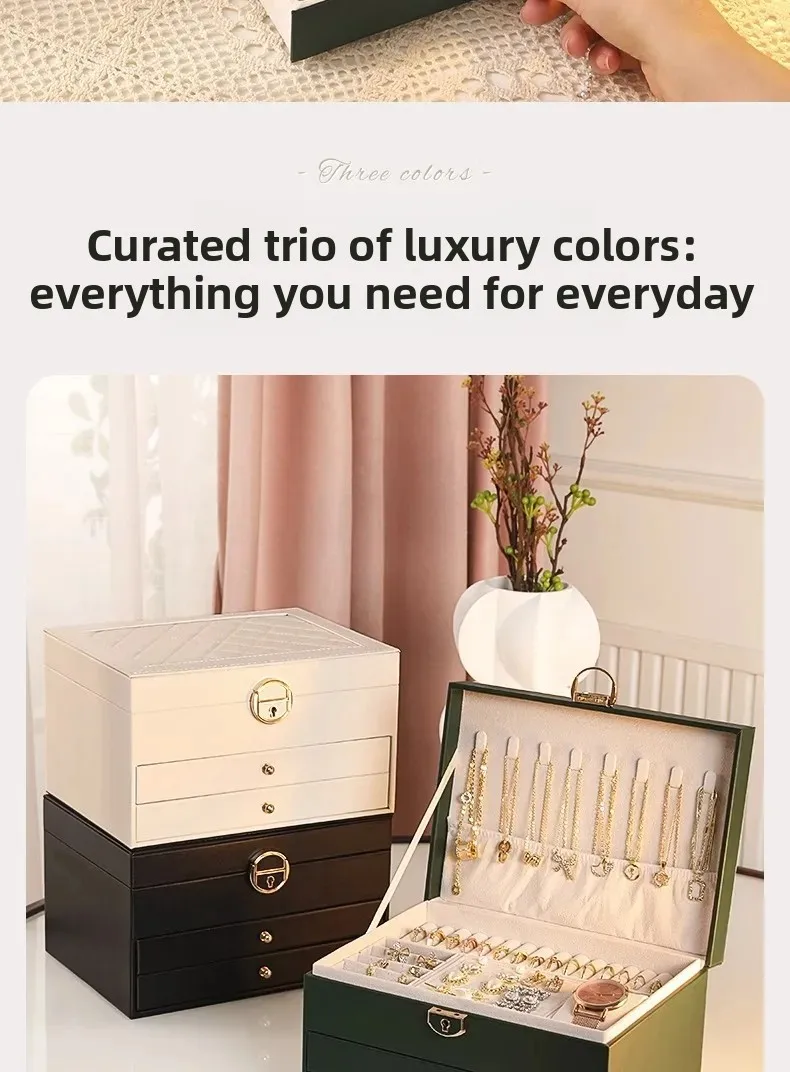 • Design raffiné : Ce coffret arbore un design raffiné, ce qui en fait non seulement une solution de rangement fonctionnelle, mais aussi un accessoire élégant pour votre coiffeuse ou votre tiroir.