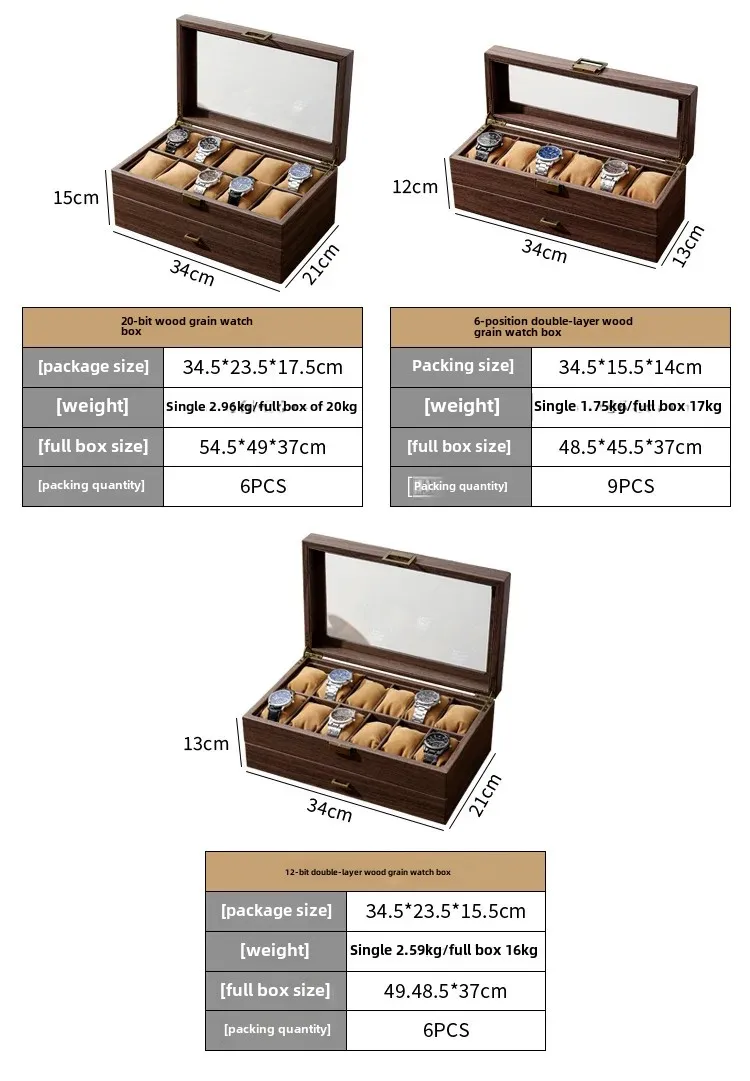 • Double rangement : Grâce à sa conception à double rangement, cette boîte à bijoux peut accueillir jusqu'à 6 montres, offrant un espace généreux pour votre collection.